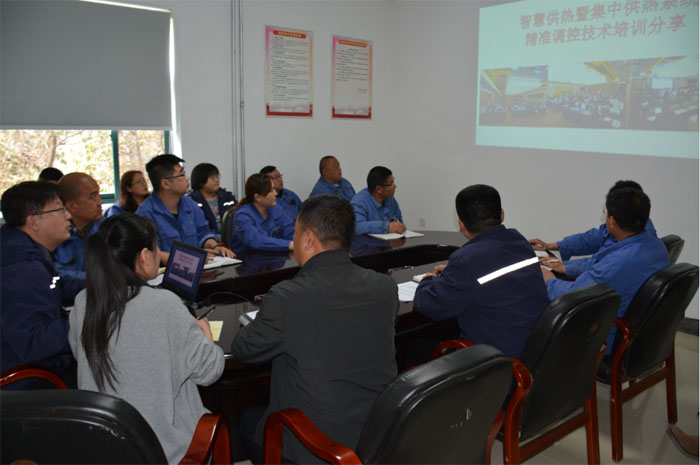 培訓(xùn)會(huì)上,孫永剛從供熱企業(yè)實(shí)現(xiàn)智慧供熱的意義、二次網(wǎng)信息化平衡管理系統(tǒng)、二次網(wǎng)能耗問題解決方案以及換熱站故障處理和日常維護(hù)等方面進(jìn)行了專項(xiàng)培訓(xùn)。孫永剛在培訓(xùn)會(huì)上指出,隨著國民經(jīng)濟(jì)的不斷進(jìn)步,人們對(duì)供暖質(zhì)量的需求也在逐步提高。近幾年,山東聚源熱力公司緊跟供熱行業(yè)發(fā)展趨勢(shì),以科技引領(lǐng)供熱發(fā)展,充分借助物聯(lián)網(wǎng)、大數(shù)據(jù)、云計(jì)算著力打造智能化精準(zhǔn)供熱,實(shí)現(xiàn)了智能熱網(wǎng)平臺(tái)系統(tǒng)項(xiàng)目的成功落地。系統(tǒng)集合了遠(yuǎn)程數(shù)據(jù)采集、設(shè)備聯(lián)動(dòng)控制、高清視頻監(jiān)控及大數(shù)據(jù)分析于一體,實(shí)現(xiàn)采暖季運(yùn)行數(shù)據(jù)的匯總分析和趨勢(shì)測(cè)算,并實(shí)現(xiàn)系統(tǒng)自動(dòng)通過熱源廠、換熱站所轄熱負(fù)荷用熱特性、圍護(hù)結(jié)構(gòu)的不同,選擇不同的供熱控制策略,完成熱網(wǎng)調(diào)節(jié)周期由“日”級(jí)別到“分”級(jí)別的跨越。在實(shí)際工作中,如何科學(xué)運(yùn)用好智能熱網(wǎng)平臺(tái)系統(tǒng),這就要求我們要充分認(rèn)識(shí)打造智慧供熱的重要性,做好技術(shù)知識(shí)儲(chǔ)備,在信息采集時(shí)確保數(shù)據(jù)精準(zhǔn)真實(shí),根據(jù)運(yùn)行數(shù)據(jù)反饋形成智能調(diào)控策略,不斷突破二次網(wǎng)平衡調(diào)整的瓶頸,擺脫對(duì)經(jīng)驗(yàn)的依賴,從而不斷提高供熱管網(wǎng)設(shè)備的安全水平,降低能源利用效率和運(yùn)行成本,有效提升企業(yè)的服務(wù)水平和用戶的舒適度。